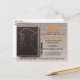 vykort till inbjudan studenten firande, med ett bok-tema som skildrar en togahatt och en penna bredvid den, på träbakgrund