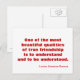 Vykortsinspiration om vänskap som citerar Lucius Annaeus Seneca. En av de vackraste kvaliteterna av verklig vänskap är att förstå och förstå.