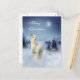 Våra vykort för jul för Alpacavinternatten har ett foto av en alpaca i en vinterplats med snö och stjärnor i natthimmlen. Alpacas är olika från annat lantgårddjur, därför att de ler alltid, och de ser alltid lyckliga. Alpacasna är egentligen förtjusande djur, och våra skulle vykort är perfekta för en djur älskare under helgdagar. Vykortet är fullständigt anpassadet var du kan resize fotoet eller ändra texten. Det finns också ett noterakort med samma bild på bekläda, och på insidan finns det kristna julvälsignelser "maj som den underbara freden av Kristus är din detta jul och alltid.",