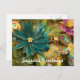 Denna vykort presenterar ett foto av julstjärnan som göras ut ur fjädrar. En påfågelfjäder kikar ut bakifrån, och andra härliga nätt prydnadar omger blomman. Skräddarsy denna vykort med ditt personliga meddelande.