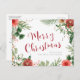Med det här vackra helgdag har du elegant med vattenfärgade röda blommor med grön bakgrund med God jul i röd text.