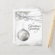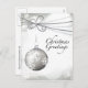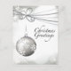 Framsidan av detta vykort är silver med snöflingor, rosett band och ord: Julhälsningar. På baksidan står det: Må denna julsäsong och nästa nyår fylla era hjärtan med värme, kärlek, skratt, tro och hopp. Det är ett sofistikerat kort som önskar dina kära all välsignelse i världen.