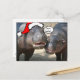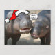 Färgrika julvykort som du kan överföra någonstans. En flodhäst som ha på sig en jultomtenhatt, står bredvid hans vänans-ordstäv. "Säsong är hälsningar" skriftliga i svart skrivar i ett tal bubblar kommande från präriehundmunnen.
