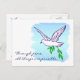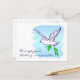 En duva av fredflugor över en blå himmel som bär ett meddelande av fred- och harmoniinnehav en grön olivgrön gren. Klicka skräddarsy den för att tillfoga ditt namn eller meddelande.