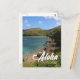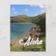 Ett aluha från Maui Hawaii-vykort. Tema:lanscape, berg, hav och strand, kokosnöt träd. färg:blue, grönt, natur.
