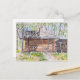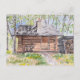 Vattenfärgning på vykort. En log sauna i skogen, på våren, målning av Kristina Andersson.
