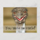Lusande fågelvykort med texten "Du får mig att le!" på framsidan.