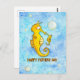 Bakgrunden till detta kort består av två olika blå nyanser som växlar till en harmonisk bakgrund med vattenfärger. Här och där stigning långsamt luftbubblor till yta. I förgrunden finns det två sjöar i gulten, en liten och en större. De ler mot varandra. Den större är far. För sjömän är det mannen som har en påse på sin mage, ge födelsen, och bär spädbarn. Under de två sjöarna stavas "Lycklig Fars dag" i orange i brev.