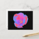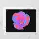 Det här söt vykortet har ett vackert foto av en tulpanbild. Fotografiet har blivit artificiellt färgad, vilket har lett till fluorescerande tulipp. De yttre petalerna är färgad med blå och röd nyans, medan de inre petalerna visar skuggor av rosa och lila. Blomens centrum är en ljus gult. Den enkla svarta bakgrunden visar den här blommans fantastiska skönhet.