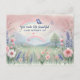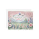 vykort med en vit vattenfärgsdesign med en ren trädgårdsscen.