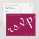 Den här klassiska, glamorösa OSA-vykortsdesignen innehåller meddelandet "osa" på framsidan. Det innehåller också ett formulär för OSA av anpassade på baksidan som mottagaren kan fylla i, tillsammans med ett anpassade adress som den ifyllda OSA kort skulle skickas till. OSA kort som detta kan användas för att ta reda på vem som kommer att delta i en födelsedagsfest, en bröllop-årsdag party, en möhippa eller något annat evenemang.
