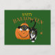 Med detta vykort visas katternas lekande karaktär under Halloween, med två svarta och vita geometriska katter som har en bra med orden "Happy halloween". En katt använder en pumpa som en hideout och lägger till en extra inslag av roligt i designen.