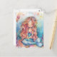 En söt liten sjöjungfru i vattenfärgsregnbåge färg i havet.