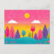 Whimsique Sunset Forest Postcard, Vibrant Illustrated Nature Postcard, Colorful Nature Art, Dreamy pinky Sunset and Träd