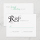 Utformning av Bröllop-svarskort för att matcha Kärlek Story-inbjudningar i svartvitt, grått och mint.