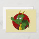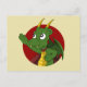vykort med illustration av huvudet på en söt liten grönt flygdrake, i röd cirkel, söt fantasi/saga design för barn av Maxi Harmony
