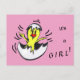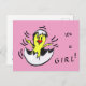 Det är en GIRL! Den här Baby Chick-Tecknaden kommer till världen från hans egg.. Du kan behålla den här texten eller lägga till en egen text, om du vill. Du kan välja en egen bakgrund Färg, om du vill.