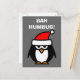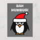 Vykort för tecknad för pingvin för jul för Bah Humbug anti. Den roliga designen för vintern semestrar med personalizable önskemål eller säsonhälsningar. Pingvin som ha på sig en jultomtenhatt.