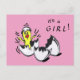 Det är en GIRL! Den här Baby Chick Tecknaden kommer till världen från hennes egg.. Du kan behålla den här texten eller lägga till en egen text, om du vill. Du kan välja en egen bakgrund Färg, om du vill.