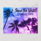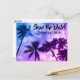 Med den här roligten och den senaste tiden kan du spara vykortet med ett foto av handflatan träd. Perfekt för ett målbröllop eller evenemang med tropiskt tema! Postkortstexten kan anpassas för din händelse.