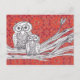 Ett tryck från ett original, blandat massmedia, ugglateckning avläste på för att grunda papper. En underbar vykort för ugglaälskare.