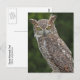 Foto av underbar horned uggla (Bubo virginianus) med fantastisk-ställning och ansiktsuttryck. Detta gör att en underbar 4,25-tums x 5,6-tums bildutskrift eller samlare skrivs ut för uggla eller raptor-älskare samt ett användbart vykort.