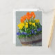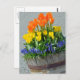 Orange och gult vår-tulpaner i cylinderplanterkort