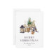 Det här mysiga, rustiska helgdag-vykortet innehåller en vattenfärgad illustration av en söt kvinnlig gnom som sitter bredvid en miniatyr Julgran, en basket av födelseloggar och vissa ljus. Ord "GOD JUL" visas i grått serif brev som koordinerar med konsten. Lägg till familjens namn och året i charkol grått italics, och din returadress på motsatt sida.