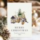 Det här mysiga, rustiska helgdag-vykortet innehåller en vattenfärgad illustration av en söt kvinnlig gnom som sitter bredvid en miniatyr Julgran, en basket av födelseloggar och vissa ljus. Ord "GOD JUL" visas i grått serif brev som koordinerar med konsten. Lägg till familjens namn och året på framsidan i charkol grått italics, och din returadress och ett kort meddelande på motsatt sida.
