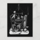 vykort för vintage av skelettband: Här har vi 1850 dödstecken i svart och vit vintage, ett skelett sitter med skelettinstrument som innehåller en gitarr, en horn och en harp med andra döskallar och ben, liksom ett timglas som sätter scenen. Fällor är parsade ovan.