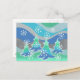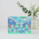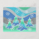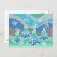 Ett modernt, stiliserat vinterlandskap med frostigt gräs träd och mousserande snöflingor. Vykort med grönt, blått, silver grått och vitt anpassade som du kan anpassa med egen text, bilder och egna idéer. Jess Perrys digitalt förbättrade färgpenna teckning.