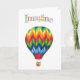 Inspirerande, färgglatt vykort perfekt för alla meddelanden som ska uppmuntra. Glad luftballong med "Föreställ dig" i färgglada bokstäver ovanpå. Tomt på insidan.