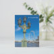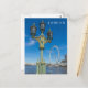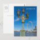 Ett vackert foto av en lampa på Westminster Bridge i London med London Öga i bakgrunden på ett vykort.
