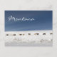 vykort från Montana, med en rad vild hästar som korsar ett snö täckt backe på vintern under ett grumligt blå himmel.