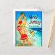 Vykort med en bild från en gammal affisch för New Jerseys kust med en mamma och två barn vid stranden.