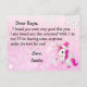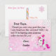 Söta rosa och vita snöflingor, med en bedårande enhörning och ett personligt brev från Tomten på framsidan. Baksidan har en plats för ditt barn att skriva sin jul önskelista.