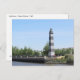 fyr på Suisun Harbour, Suisun City, Solano County, Kalifornien. Byggt 2006, 52 fot lång. Blå himmel och placid vatten belyser ljuset och mörken grått rand i denna milstolpe.