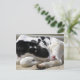 Designat vykort med fotografi av en kvigbling på eftermiddagen sol. Fotot fångades av konstnären Barbara Giordano vid en pettzoo i Connecticut.