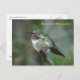 En slätstjärtad Hummingbird (Selasphorus platycercus) sitta tänder en perch, lätt upplyst mot en mjuk, suddig grönt bakgrund. De vita bröstfjädrarna och gröntens kroppsmassa är ganska slående på den här lilla hummern.