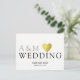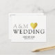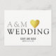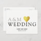 En fin utformning på vitt och tydligt vykort, med ditt eget initialer (monogram), ord "bröllop" med ett faux guld hjärta och med anpassningsbar linjer av text längst bak på vykortet.. för en enkel, modern och elegant "spara datumet"-bröllopsinbjudan