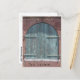 Önskad öppningsdörr i byggnad av rött tegel. Text på kortets framsida "Ny plats ...". Anpassa med Business namn, adress och mobilt nummer.