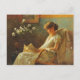 Överför din artyvykort med en målning från styr av historia. Klassikermålning från den storartade konstnären "Eva Dora Cowdery" med flickan som spenderar henne tid med en bok.