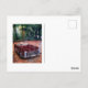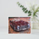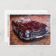 Vykort med båda sidor Handritad målarfärg automatiskt av artist. Retro burgundy car Hand teckning. Vintage burgundy automobile.