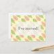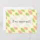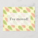 Vykort med lövtryck för flytt | höstlöv design för nya hem. Anpassad flytttext; jag har flyttat! Lägg till din nya adress på baksidan. Moderna flyttkort för hem och företag. Söt vektorgrafik inspirerad av naturen.