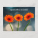 Vykort med tre orange Gerberas i rad