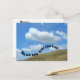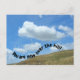 Backe med guldgräs, under blå himmel med vita fluffmoln. Texten "Du är nu över backe!" är i en böjd linje som texten verkar svinga upp och över backe. Texten på meddelandesidan lyder "Grattis på födelsedagen!"