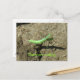 Ljusa gröntar som ber mantis solar på sten. Hans långa svarta skugga ge djup mot bilden. Gör dina vänner och din familj sällskap sällskap med sommarupplevelsen via vykort.