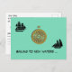 Meddelande om personligt byte eller affärsflytt. Framsidan visar en central kompass ro i brons med skugga. Två segelrutor i övre lämnar och nedre högernas hörn. Texten lyder "Skickar till nytt vatten ..." På baksidan: Anpassa namn till den flytta personen/företaget, med nya adress budskap och ett budskap som du vill skicka.