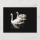 Svart och vit fotografi - vackra par vita svanar simmar och deras reflektion. Finns även som utskrift, hälsningskort och frimärke.