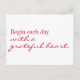 Börja varje dag med ett tacksamt hjärta. Detta är en så underbar påminnelse för vänner, familj, medarbetare och oss själva. Vitt vykort med vacker röd typ. Tack för att du stannar. Jag är glad att ni är här.